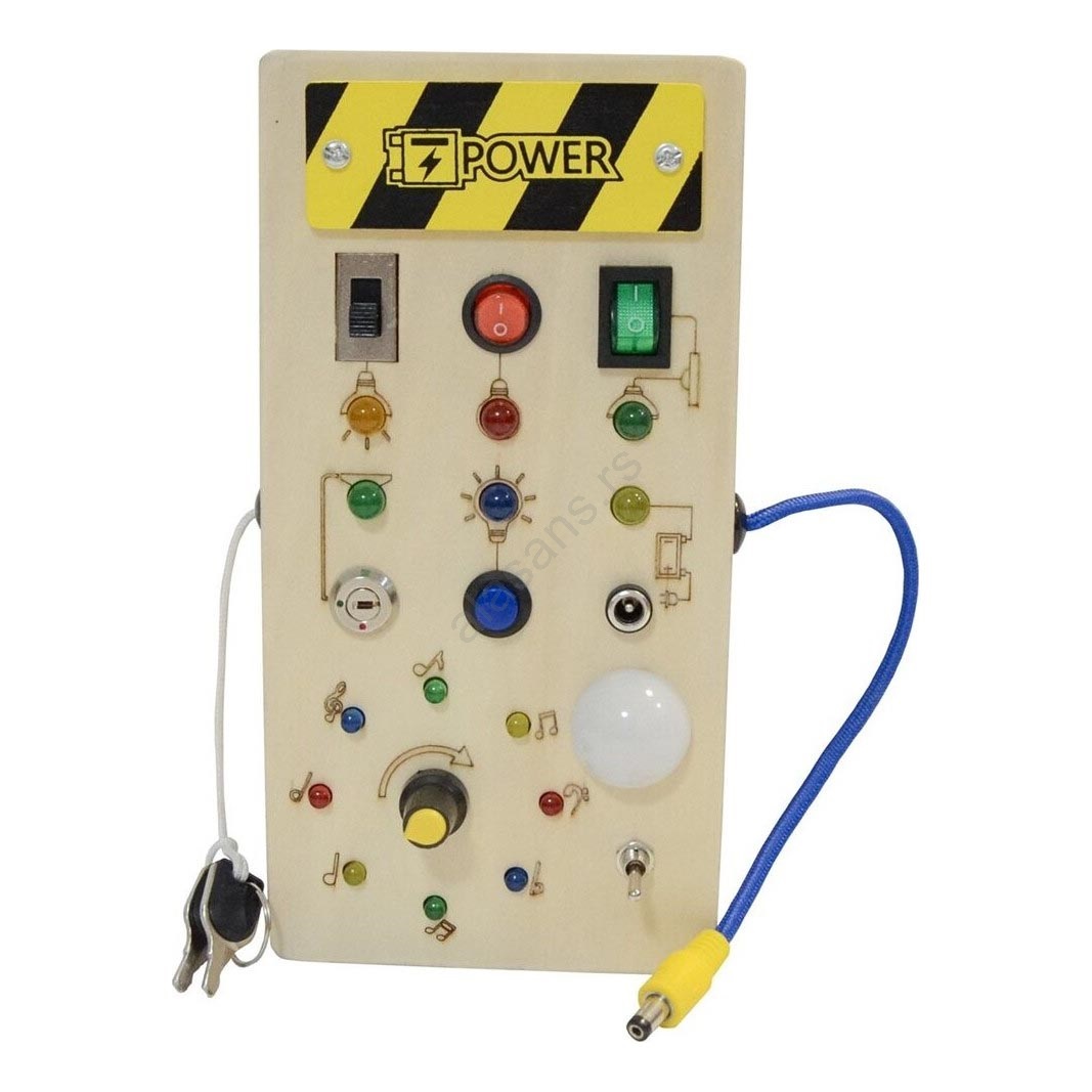 • Tabla je opremljena nizom interaktivnih elemenata, kao što su prekidači, LED lampice i drugi elementi.