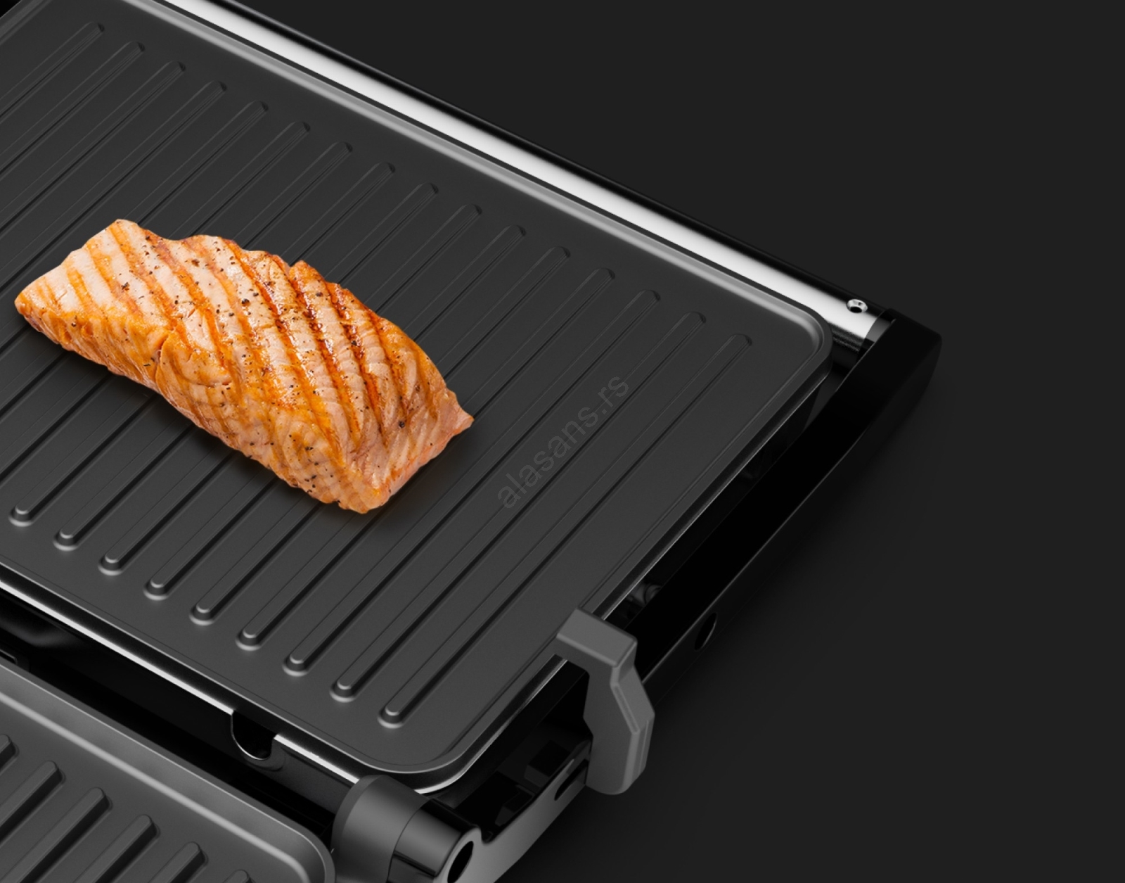 • Zahvaljujući mogućnosti potpunog otvaranja grila pod uglom 180°, možete ubrzati proces kuvanja i pripremiti obrok za celu porodicu odjednom.