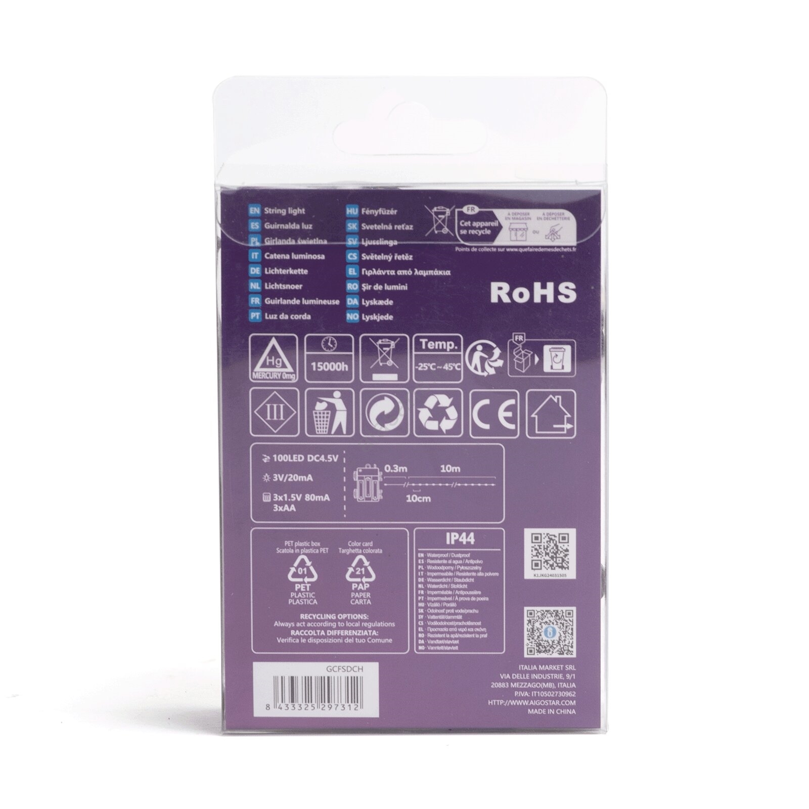 Aigostar -LED spoljni božićni lanac 100xLED/8 funkcija 3xAA 10,3m IP44 topla bela | Alasans