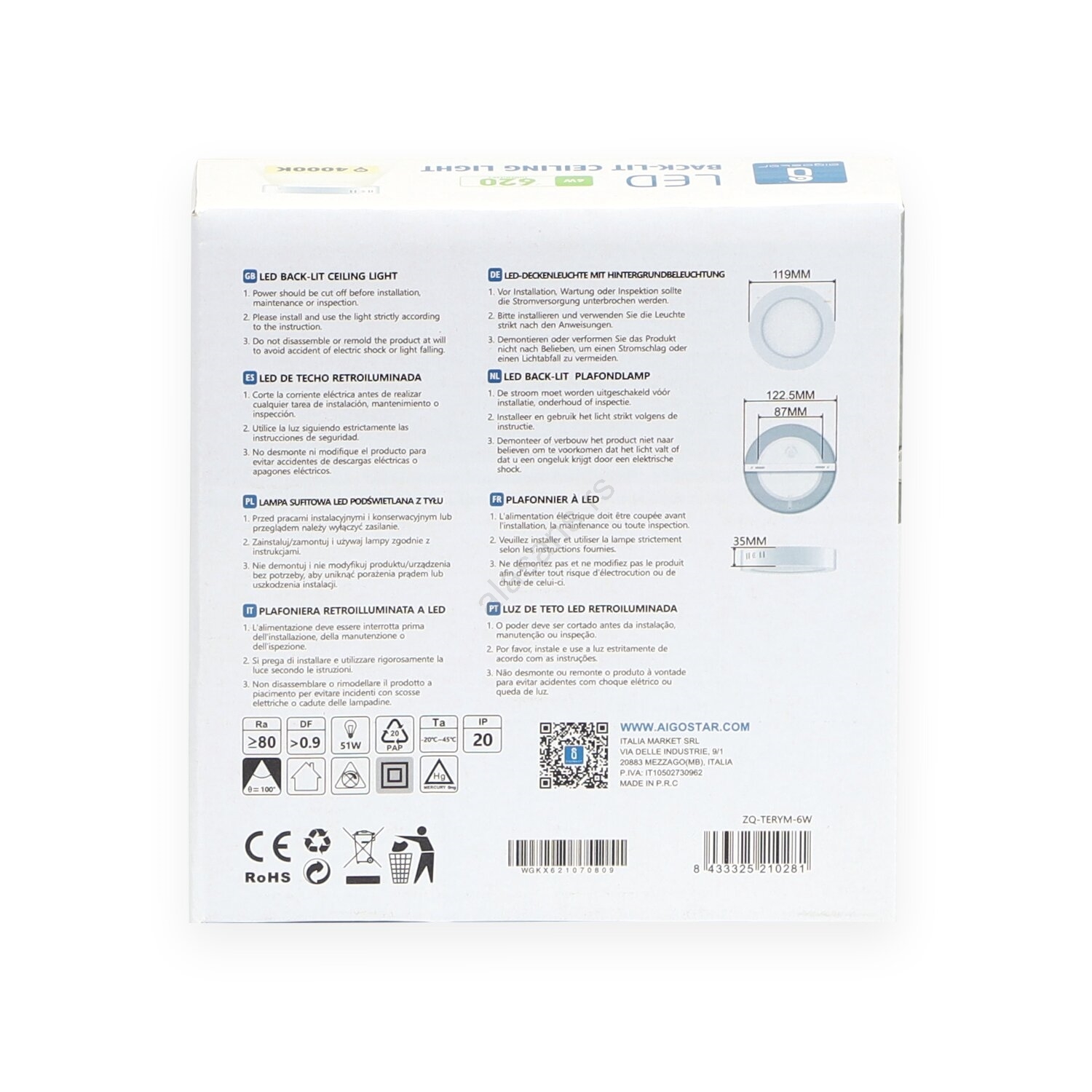 • Aigostar - LED stropno nadgradno svetlo LED/6W/230V preč. 12,3 cm 6500K belo
