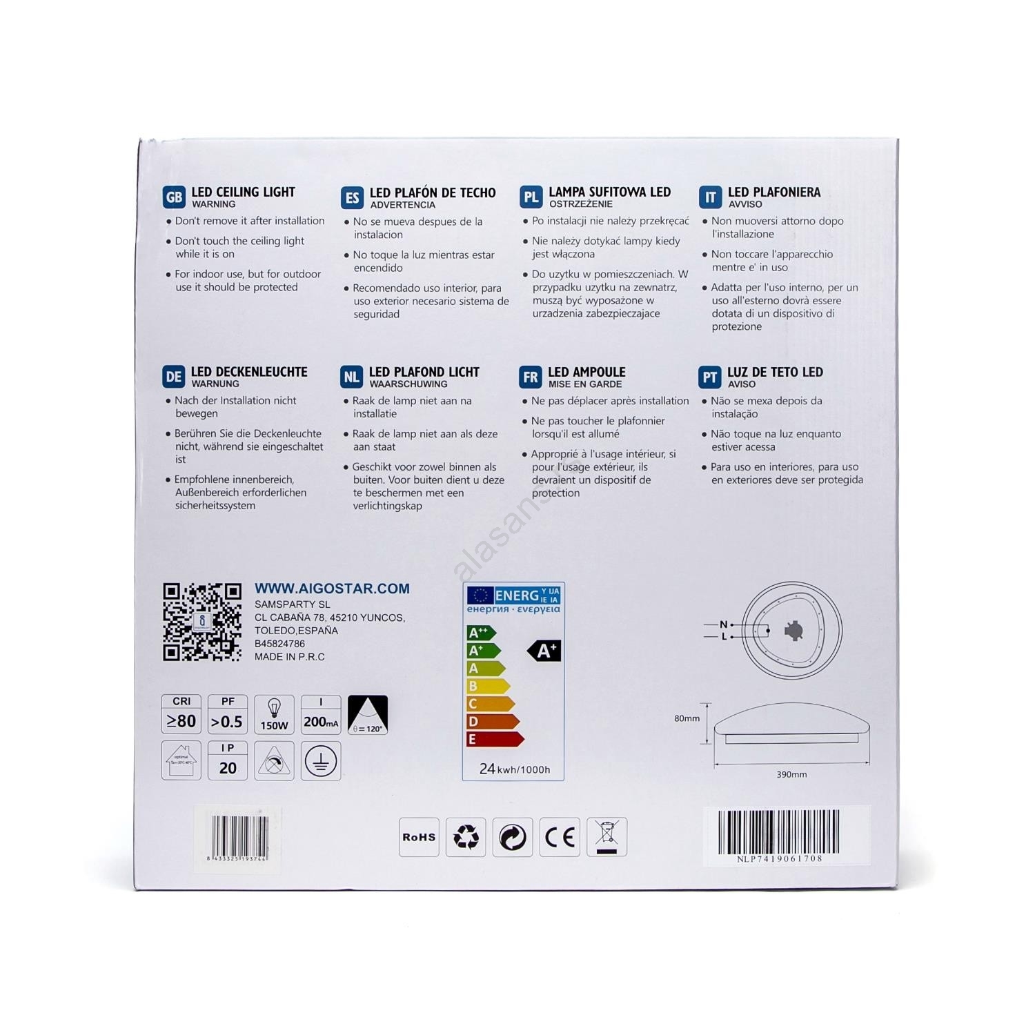 Aigostar - LED plafonsko svetlo sa senzorom, 24W, 230V, 3000K | Alasans