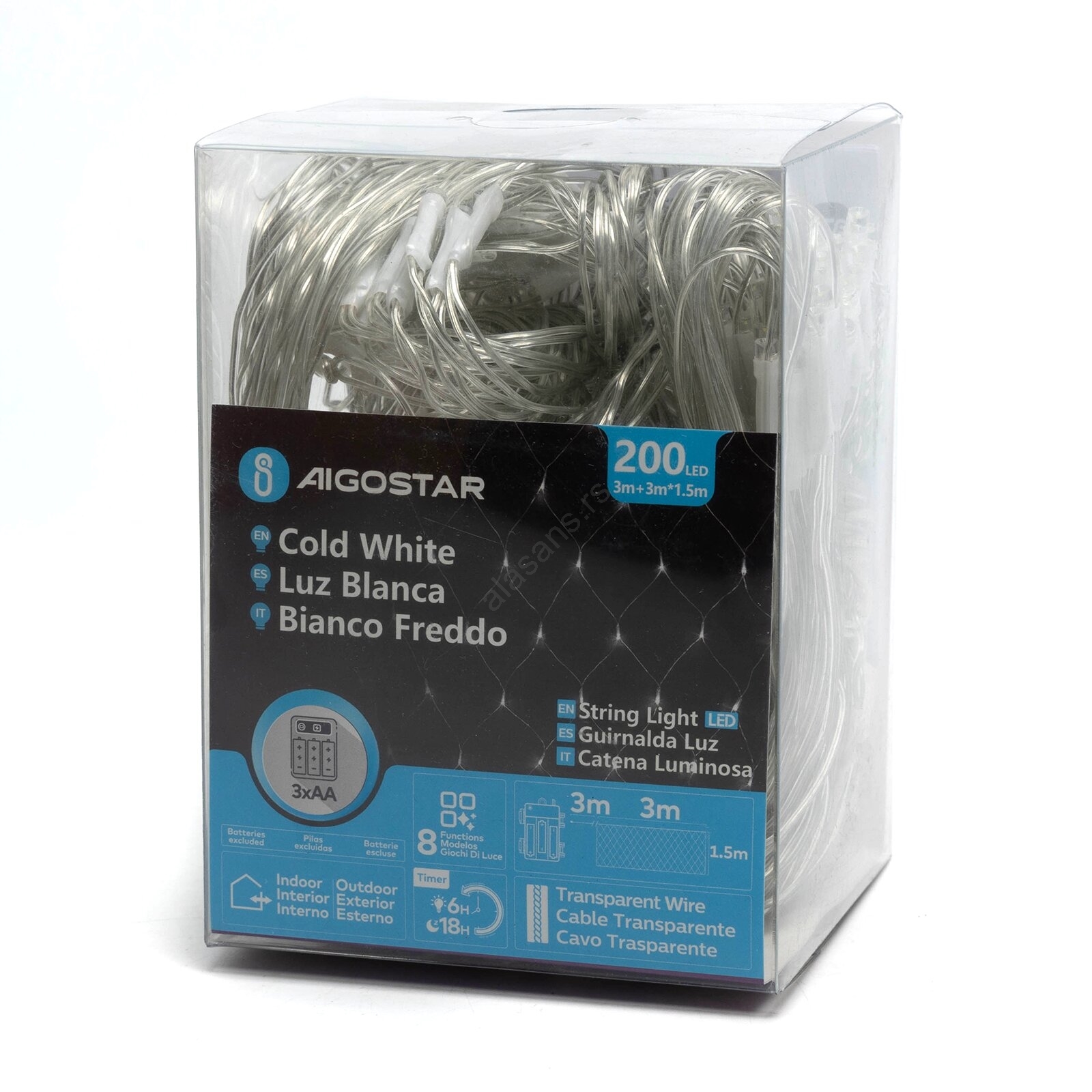 Aigostar - LED spoljni božićni niz 200xLED/8 funkcija 6x1,5m IP44 hladno bela | Alasans