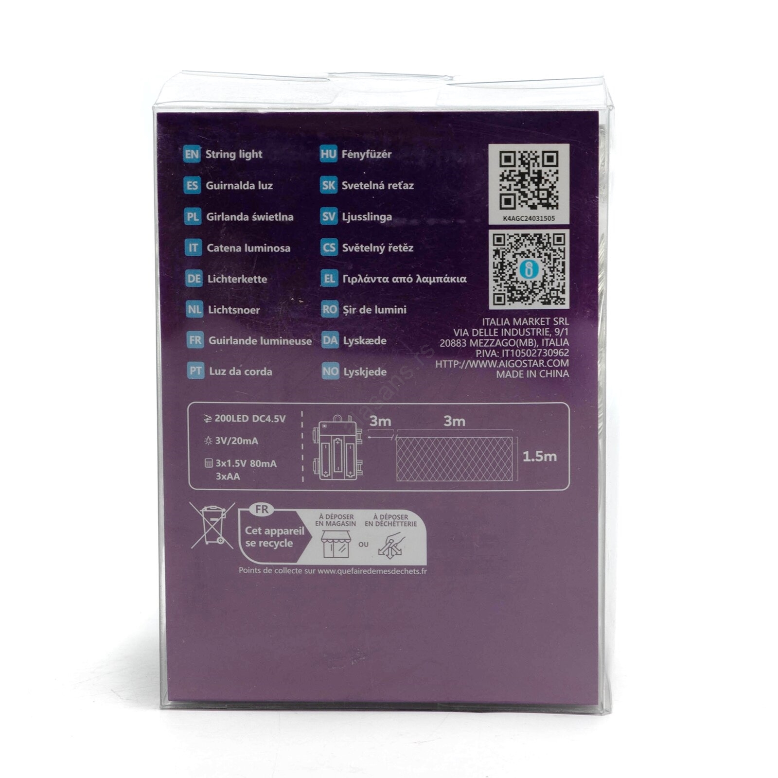 Aigostar - LED spoljašnji božićni lanac 200xLED/8 funkcija/3xAA 6x1,5m IP44 hladna bela