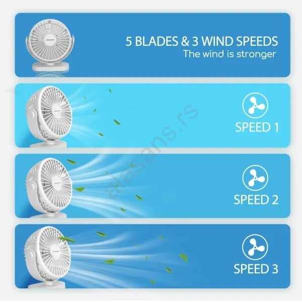 Aigostar - Punjivi stoni ventilator 4W/5V 1500mAh beo | Alasans