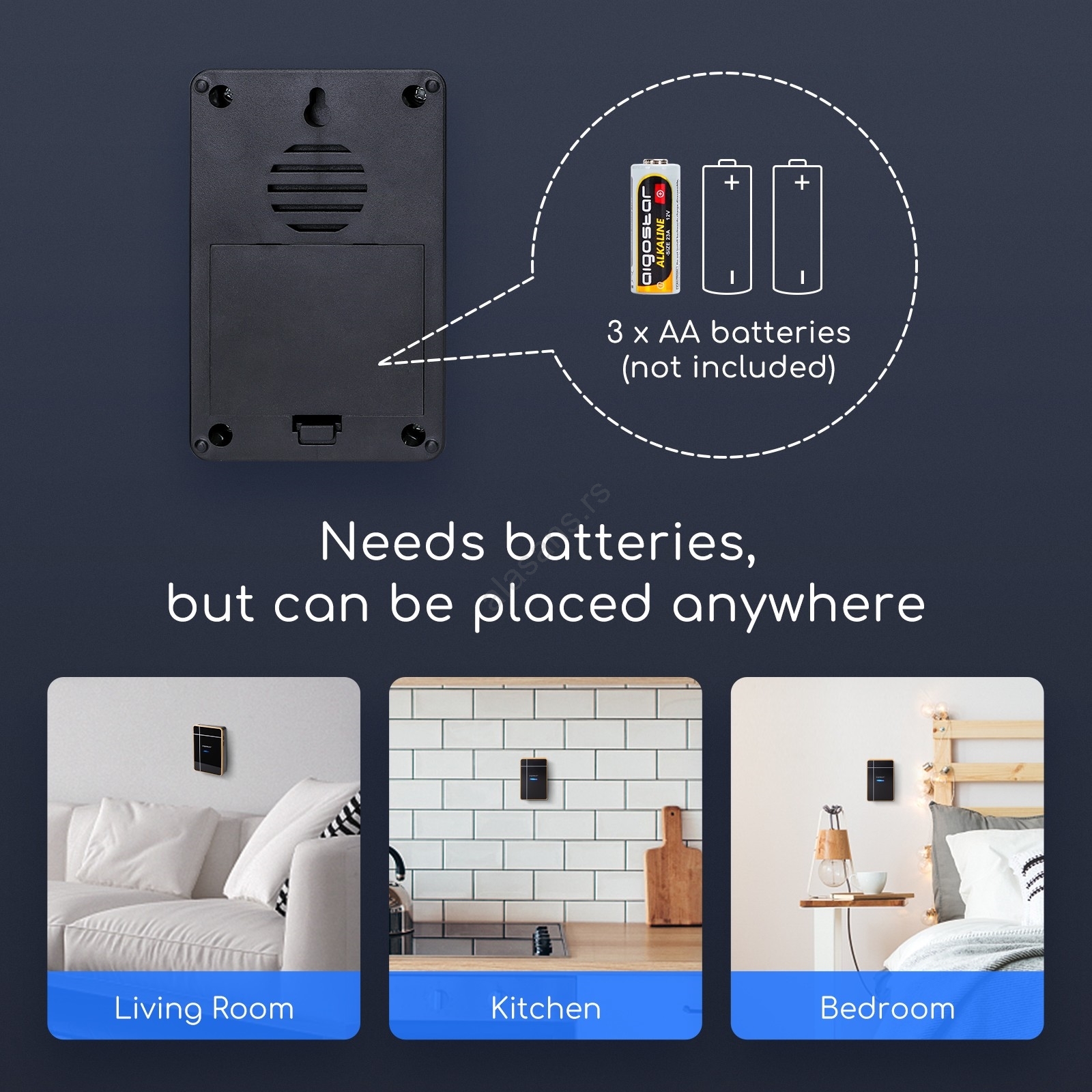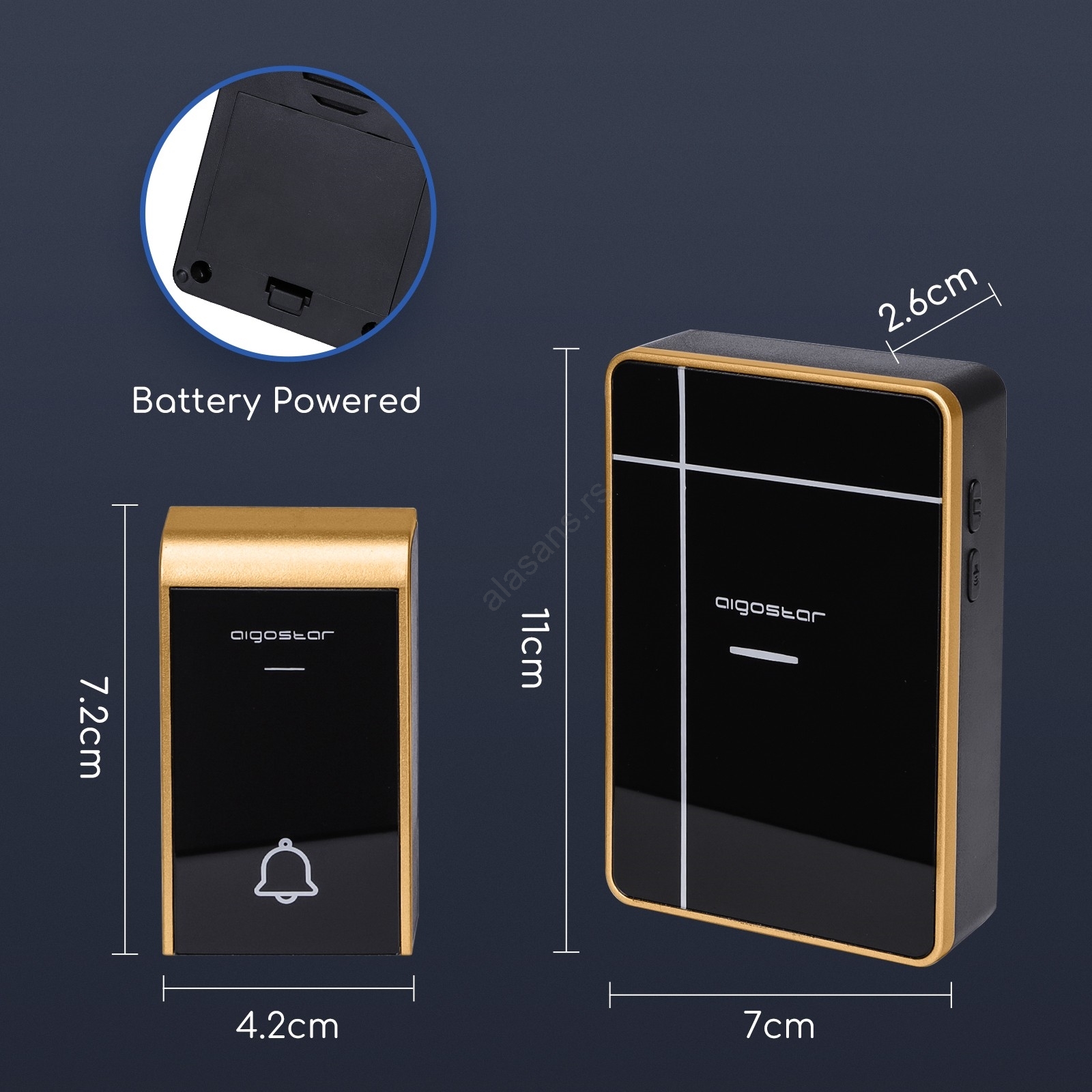 Aigostar - KOMPLET 2x bežični zvončić 3xAA IP44, crni | Alasans