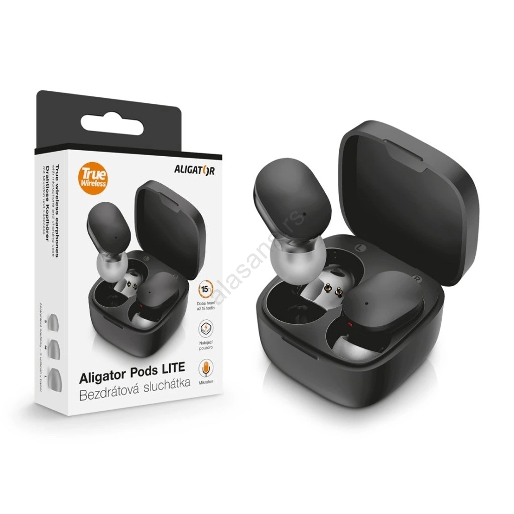 Aligator TWS05 - bežične slušalice Pods LITE 200 mAh + 2x 30 mAh IP30 crne | Alasans
