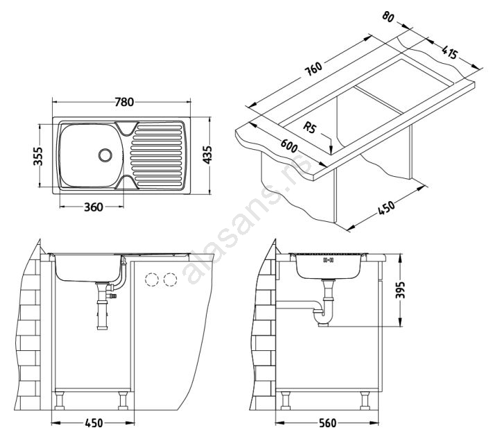 • ALVEUS 1136539 - Kuhinjski sudoper BASIC 78x43,5 cm matirani čelik/satin, veliki otvor za odvod