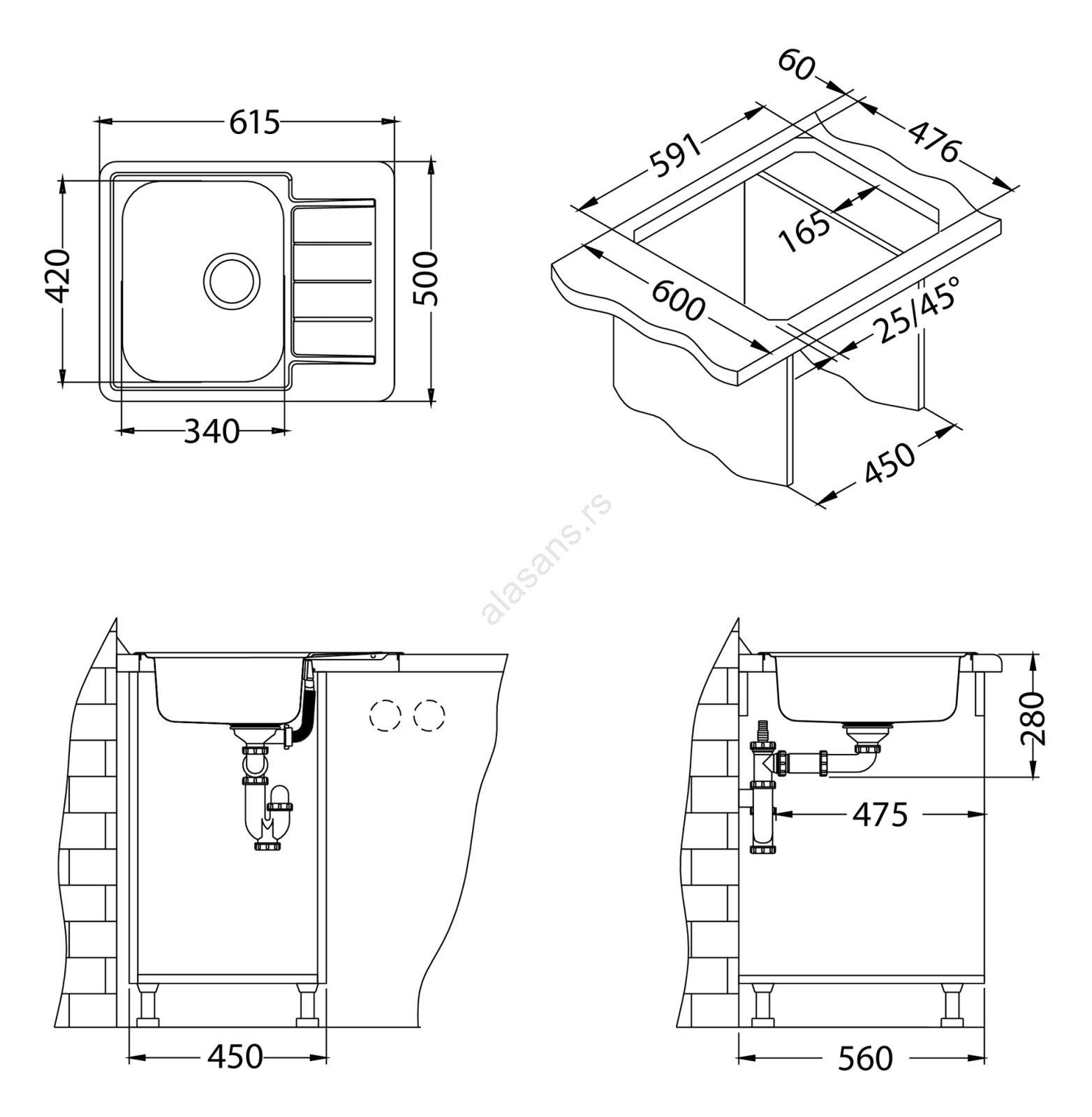 Sadržaj pakovanja: sudopera od nerđajućeg čelika, montažni nosači i zaptivke, sifonski ventil sa košaricom 3 1/2, sifon sa priključkom za sudomašinu.