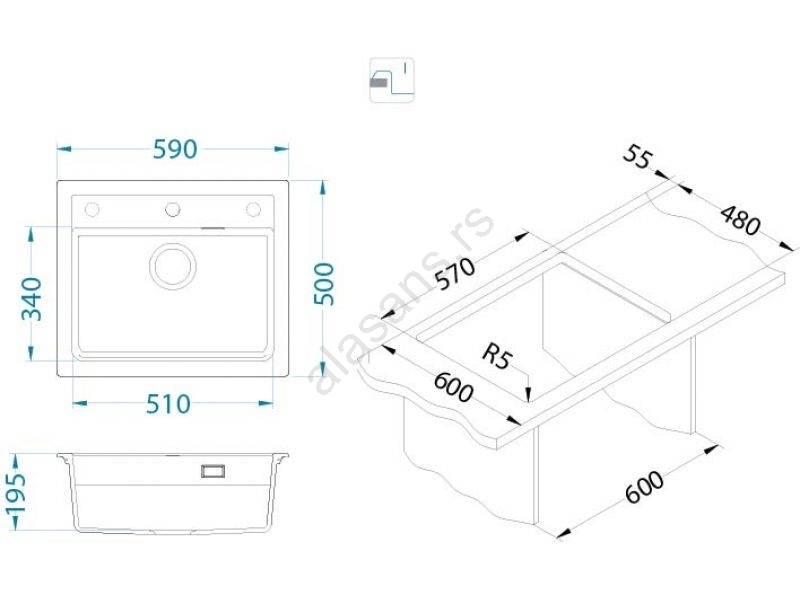 • Zaptivni materijal nije uključen u pakovanje; kod granitnih sudopera koristi se silikon kao zaptivač.