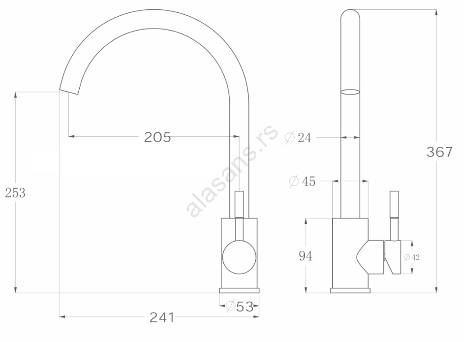 ALVEUS ES3508AE - Kuhinjska baterija VIOLA 36,7 cm, brušeni nerđajući čelik | Lampomanija
