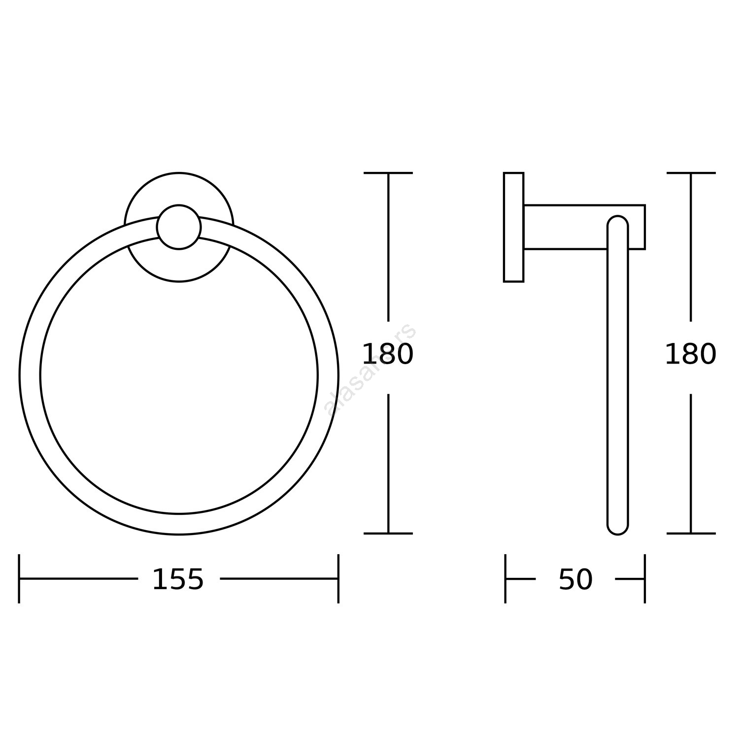 Aqualine - Zidni držač peškira SAMBA, prečnik 15,5 cm, crni | Alasans