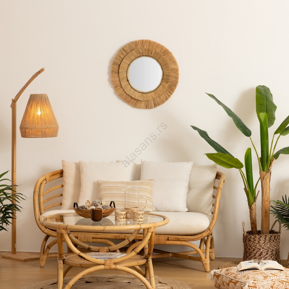 • Okvir ogledala je izrađen od rafije.