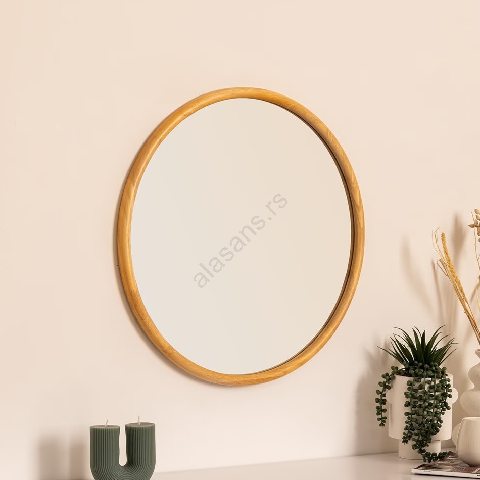 Atmosphera - Zidno ogledalo KIM, prečnik 55 cm, od kaučukovog drveta | Alasans