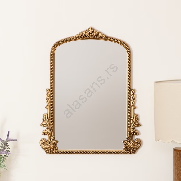 • Metalni okvir ogledala u elegantnoj zlatnoj boji.