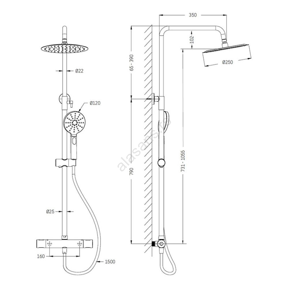 BATH DELUXE 31-120-07-01-00 - Tuš set sa termostatskom baterijom DRAGOR u mat beloj boji | Alasans