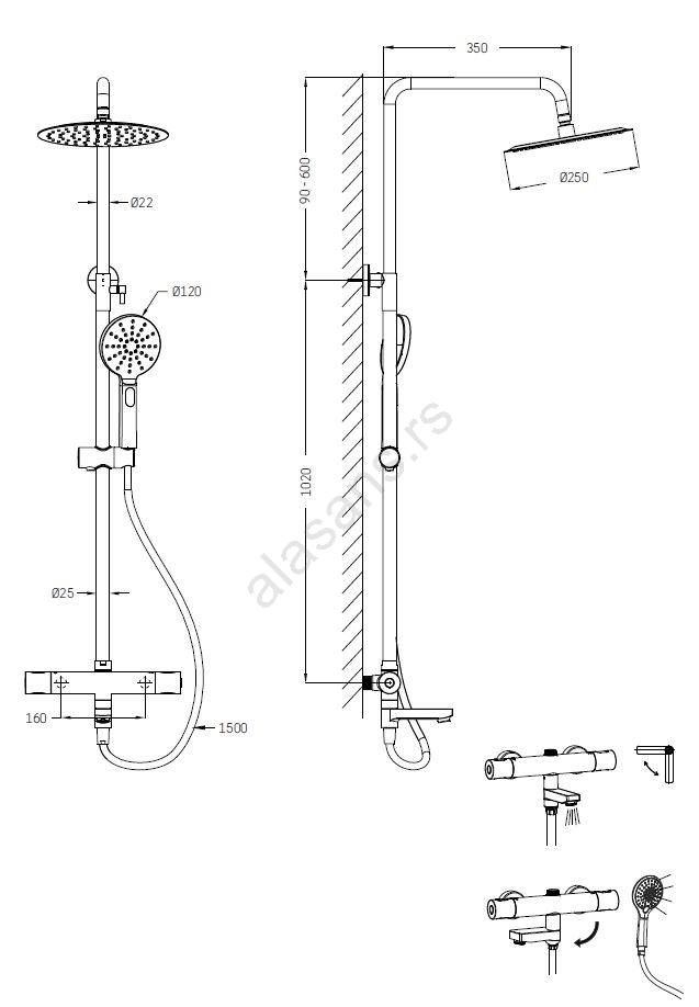 • Set se sastoji od termostatske baterije od masivnog mesinga.