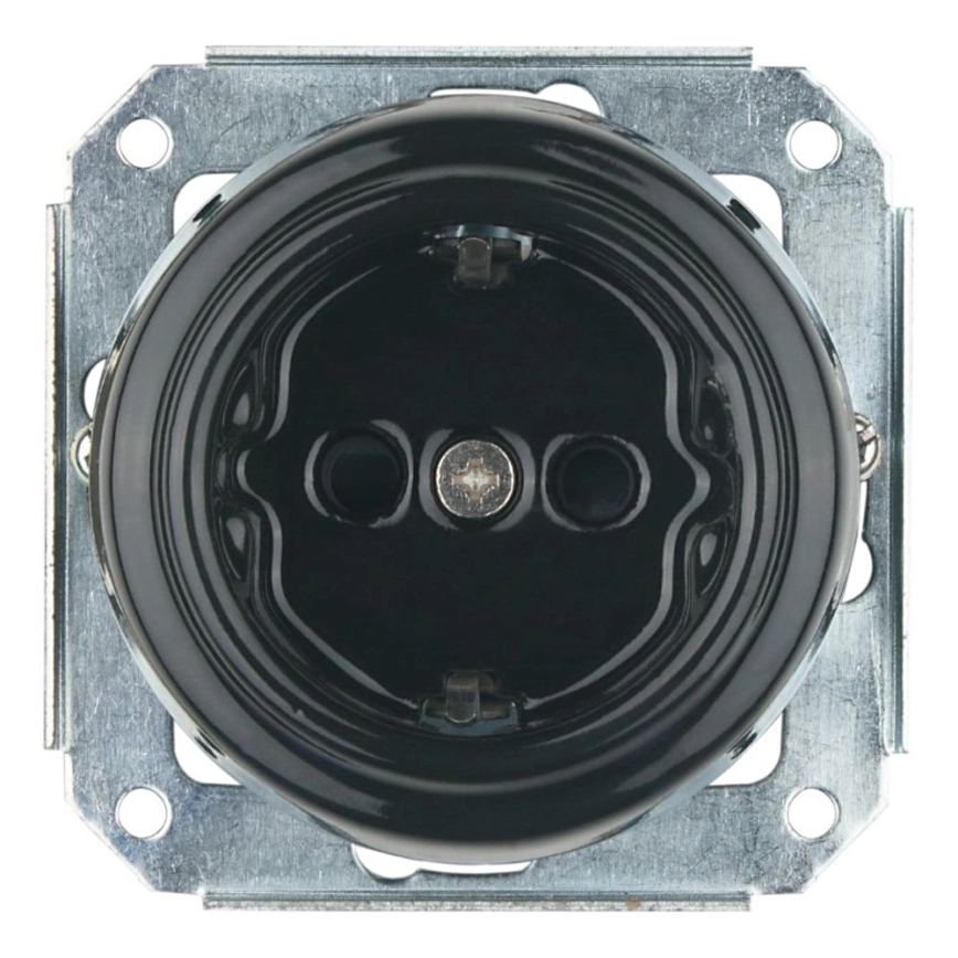 Bohemia-Design - porcelanska retro kućna SCHUKO utičnica bez okvira 250V/16A crna | Alasans