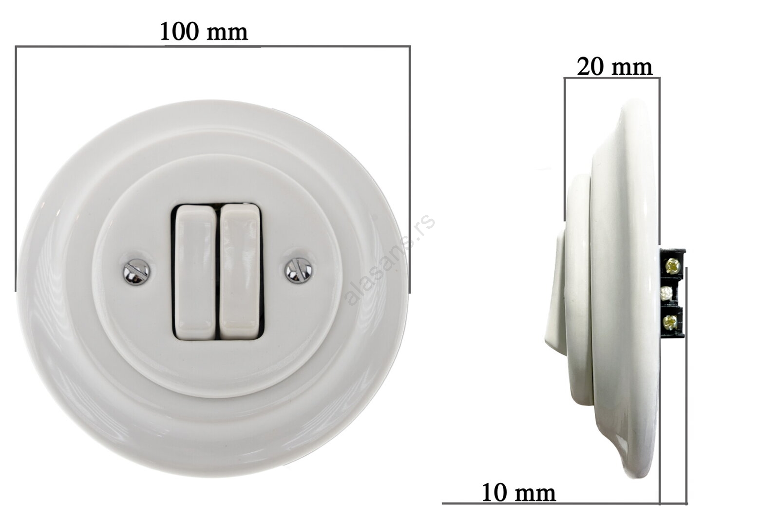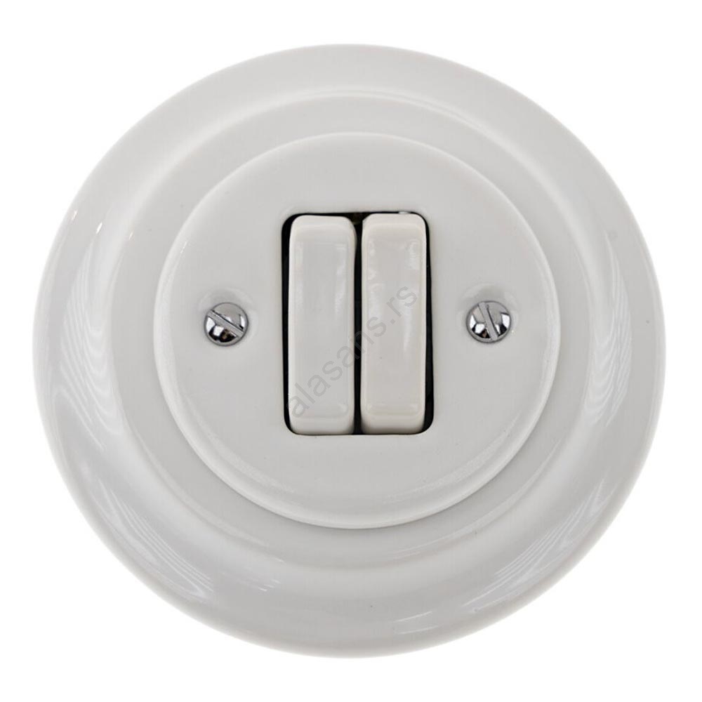 Bohemia-Design - Porcelanski retro dvostruki prekidač sa ramom br. 5, beo | Alasans