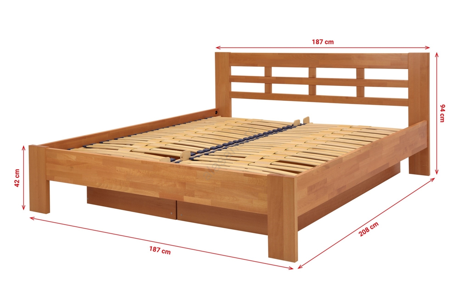 • Bračni krevet od punog drveta s prostorom za odlaganje ANGELA 180x200 cm, svetli orah