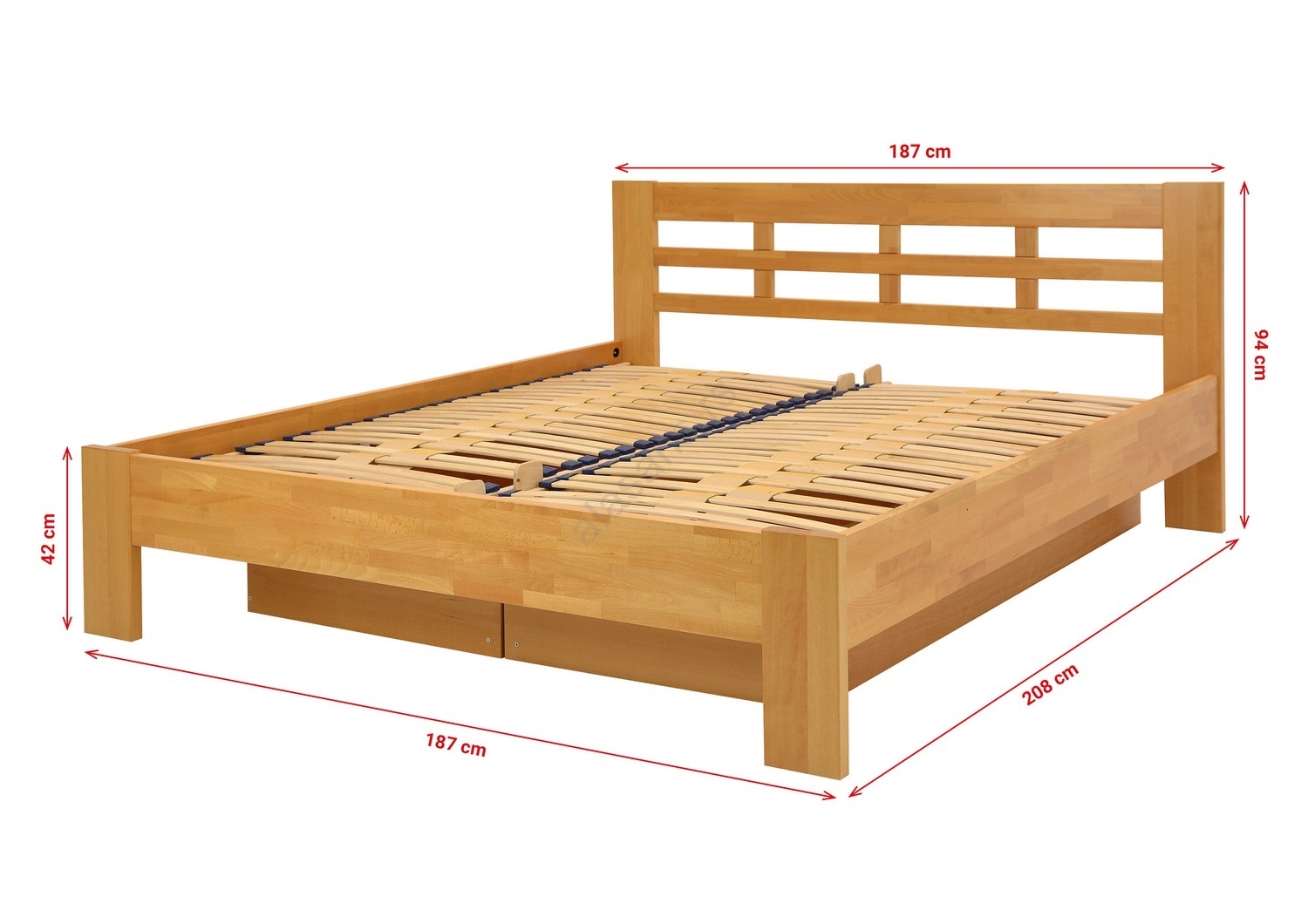 Bračni krevet od punog drveta s prostorom za odlaganje ANGELA 180x200 cm, svetli orah | Alasans