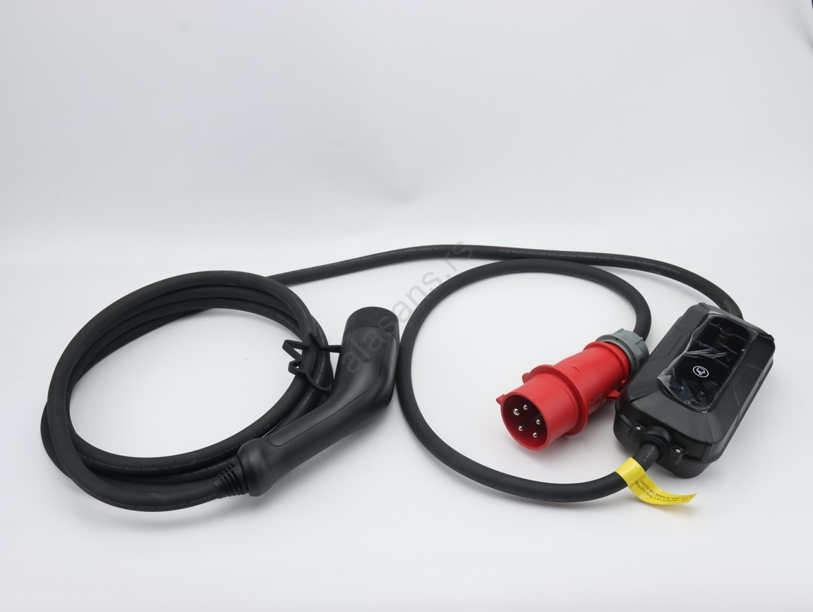 • Ova punionica je opremljena kablom koji s jedne strane ima CEE konektor, a s druge strane utikač tipa TYPE-2, što omogućava kompatibilnost sa širokim spektrom električnih automobila i plug-in hibrida.