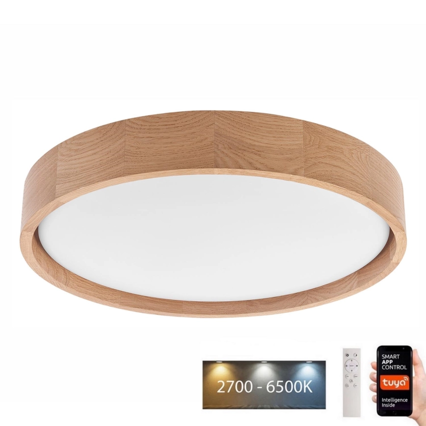 Brilagi - LED prigušiva plafonska svetiljka MANAROLA SMART LED/24W/230V 2700-6500K hrast prečnik 41 cm Wi-Fi + daljinsko upravljanje Tuya