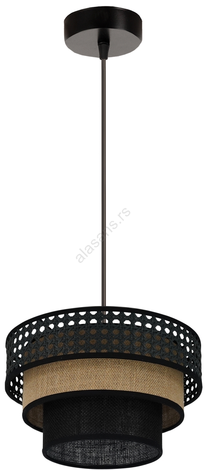 Brilagi - Luster na sajli DAKOTA LUNETA 1xE27/15W/230V prečnik 25 cm crna/ratan | Alasans