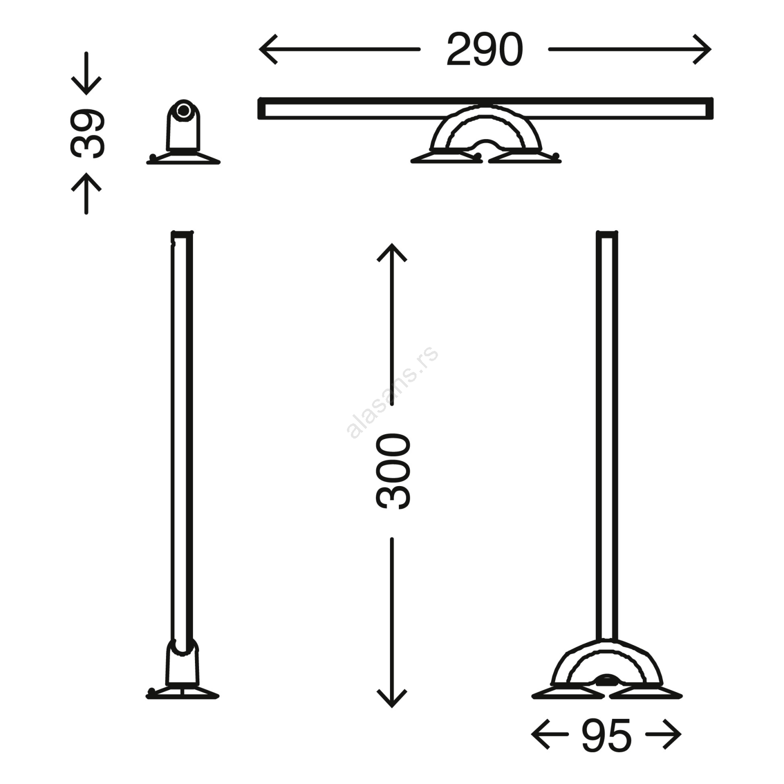 • Dimenzije pri montiranju na zid: 290x39 mm (DxŠ).