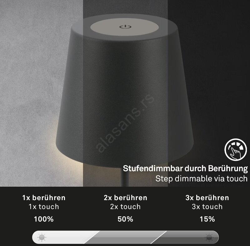 Briloner 7508015 - LED prigušiva punjiva stolna lampa LED/2,5W/5V IP44 crna | Alasans