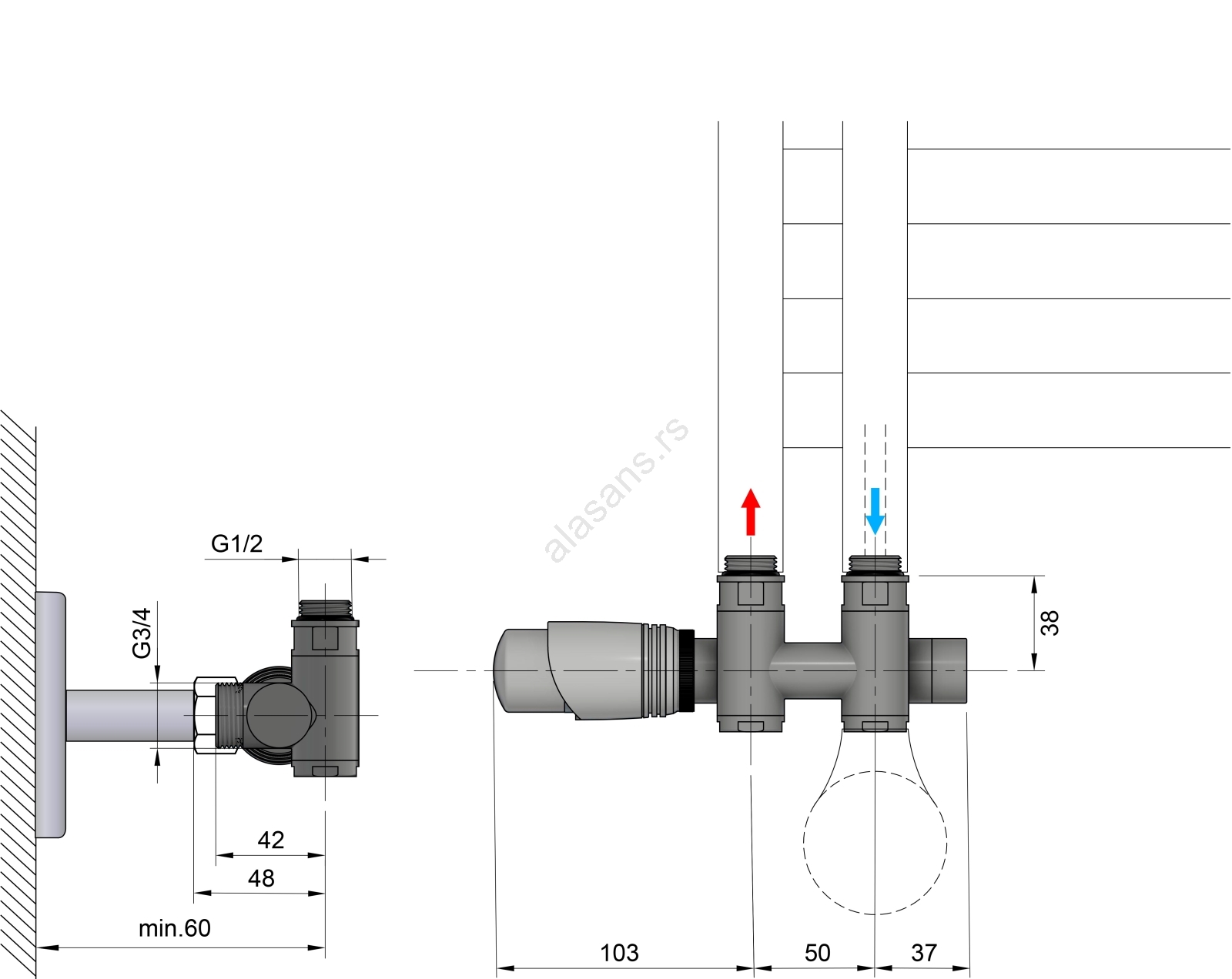 • Idealno za kupatilske radijatore i druga grejna tela sa središnjim priključkom.