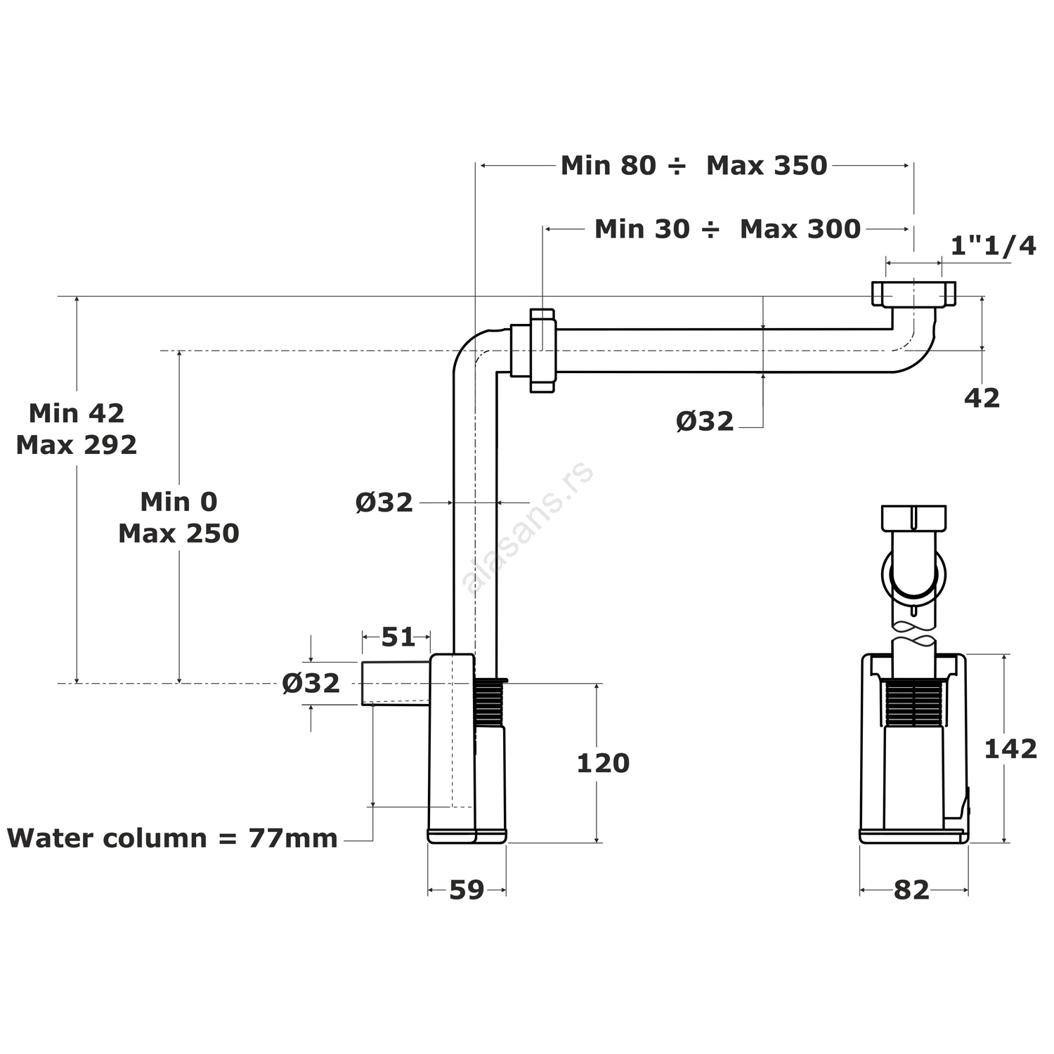 • Sifon ima priključni navoj 5/4'' i izlaz za odvodnu cev prečnika 32 mm.