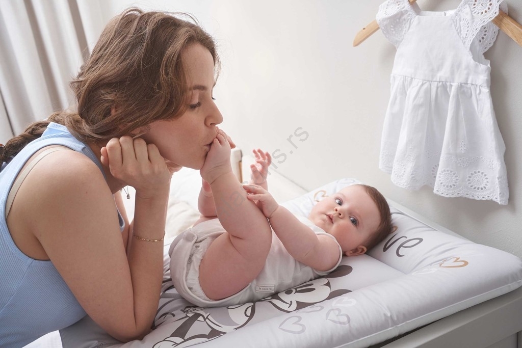 • Meka dečija podloga za presvlačenje sa motivom Mickey Mouse i Minnie.