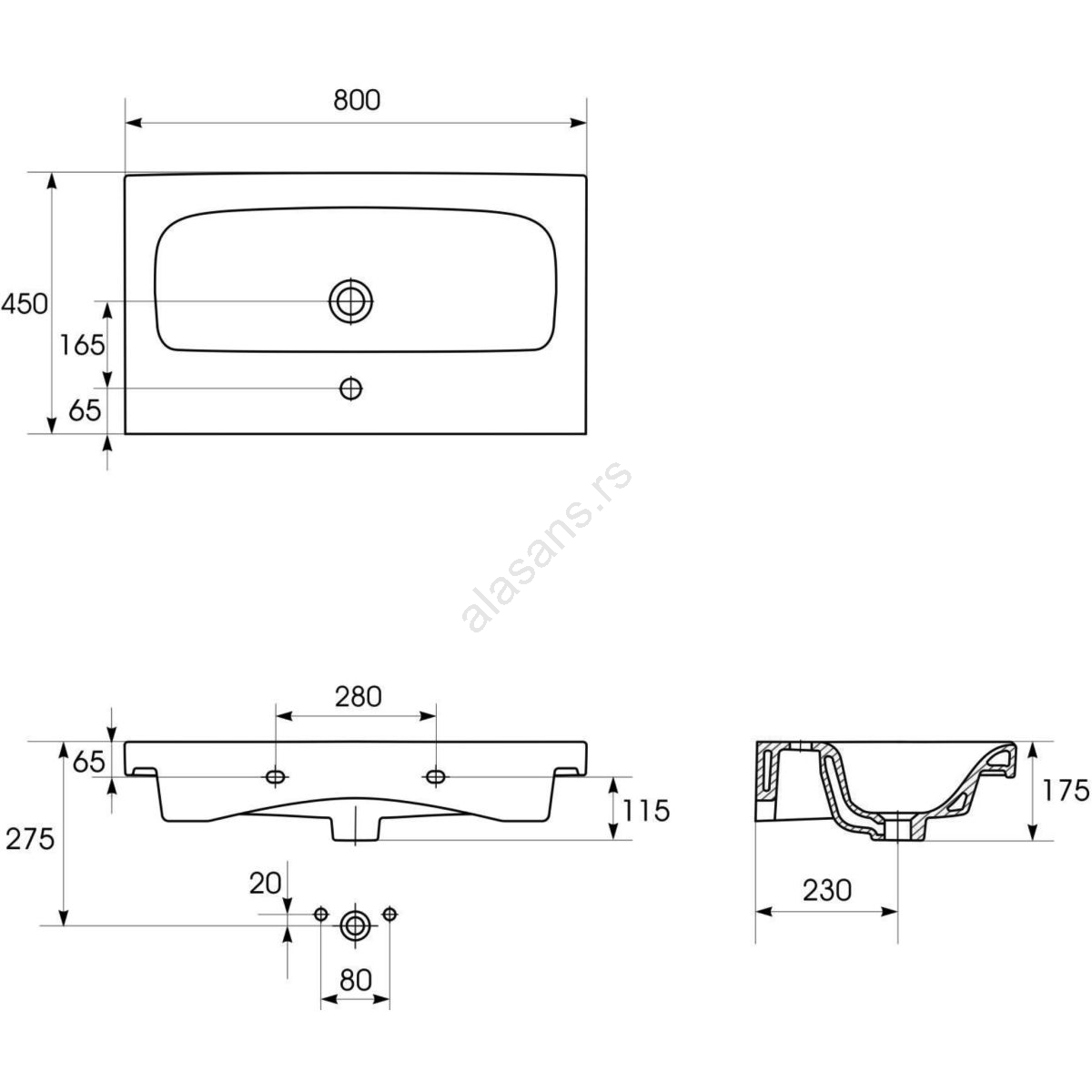 Cersanit K116-013-ECO - Ugradni umivaonik MODUO 45x80 cm keramika/sjajna bela | Alasans