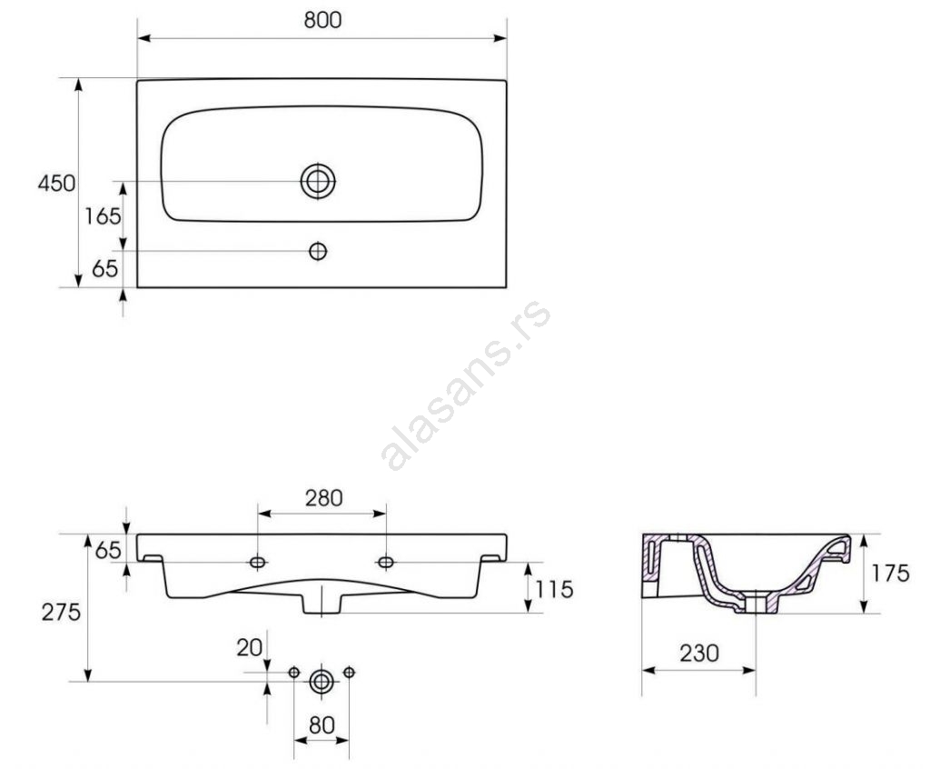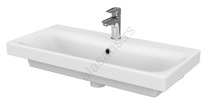 • Keramički umivaonik ima klasičan pravougaoni oblik sa otvorom za slavinu i preljevom.