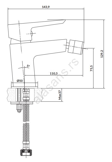 • Bide baterija je takođe opremljena fleksibilnim priključnim crevima Eco EPDM dužine 40 cm.