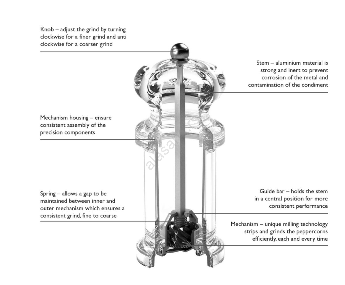 • Mlin je opremljen mehanizmom od ugljeničnog čelika.