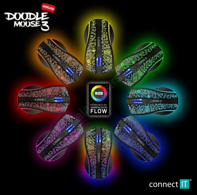 • Sadržaj pakovanja: miš, USB mini prijemnik, punjački kabl USB-A -> Micro USB (150 cm), promo nalepnica "DOODLE 3" i softver za besplatno preuzimanje.