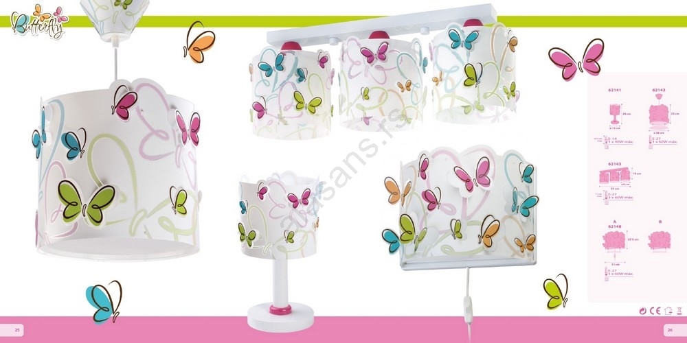 Dalber 62141 - Dečija lampica BUTTERFLY 1xE14/40W/230V