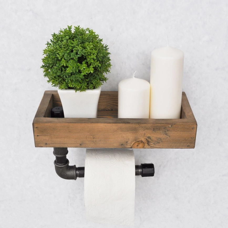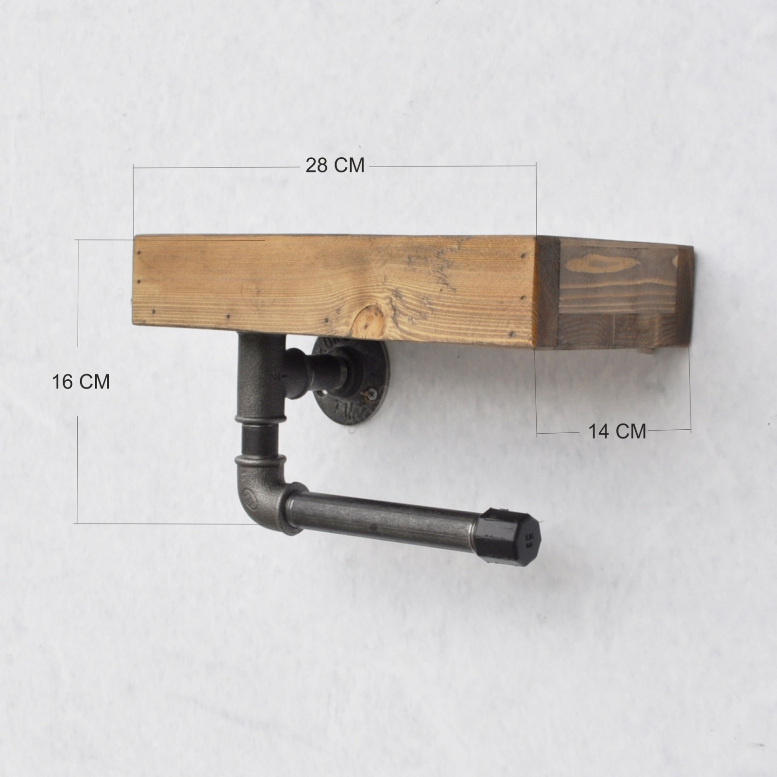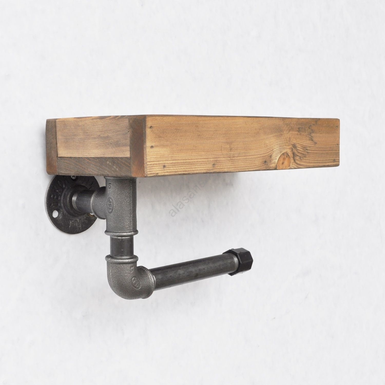• Držač toaletnog papira sa policom od smrekovog drveta u industrijskom stilu.