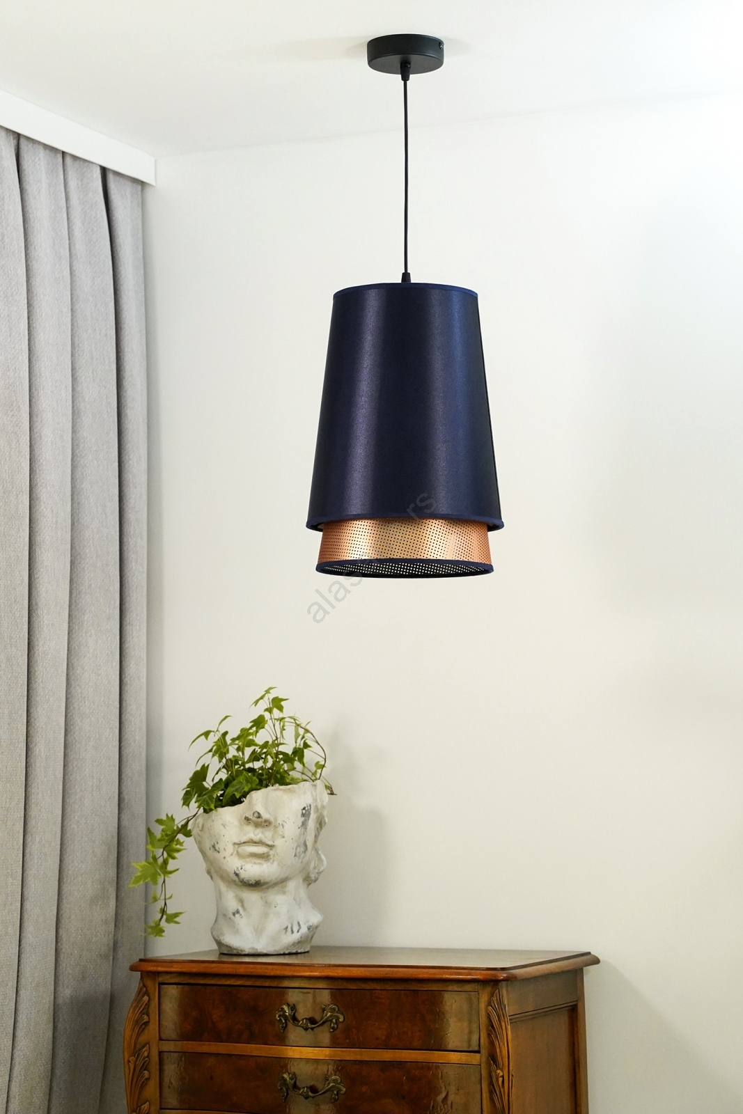 Duolla - Luster na sajli BELL SHINY 1xE27/15W/230V prečnik 25 cm plava/bakrena | Alasans