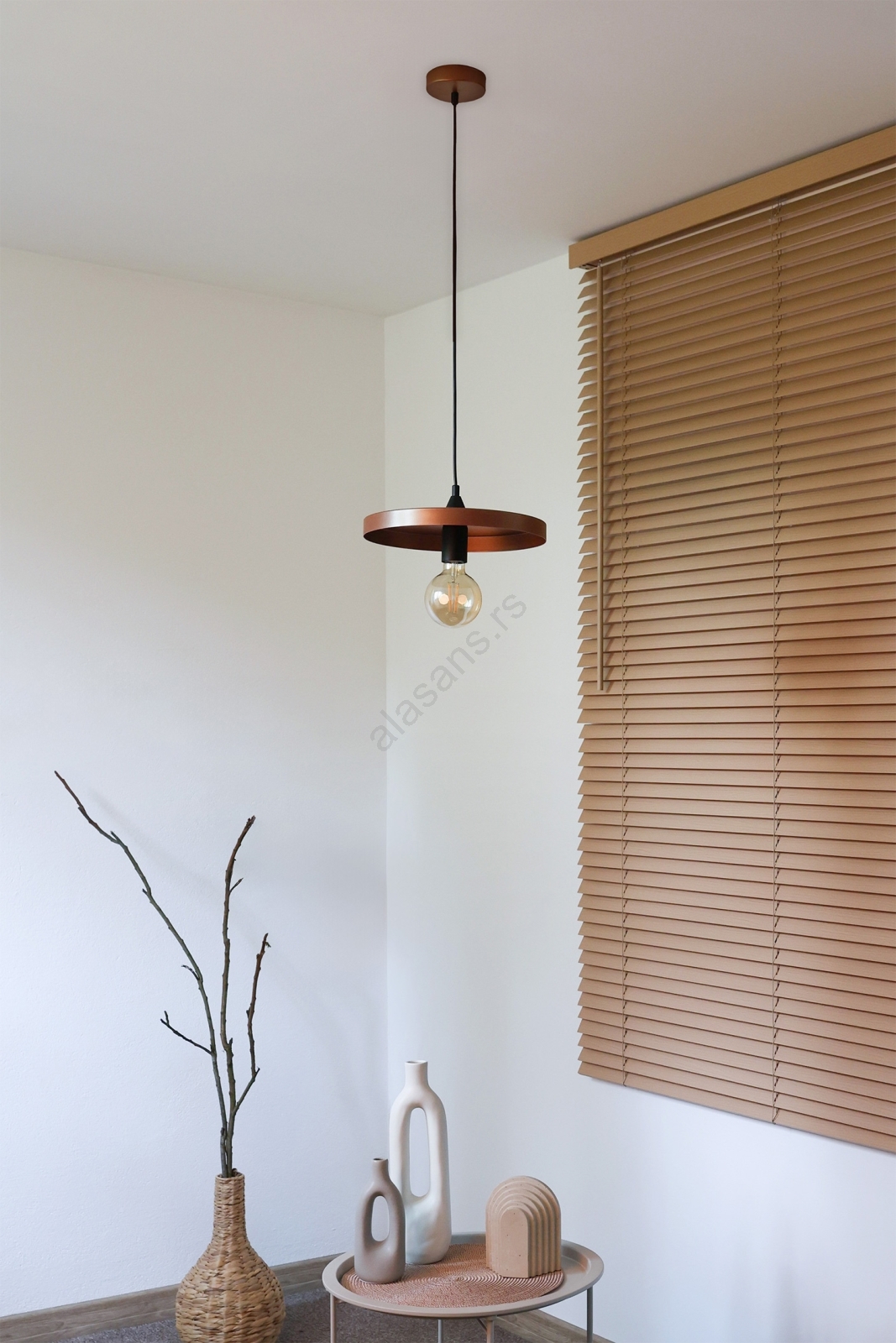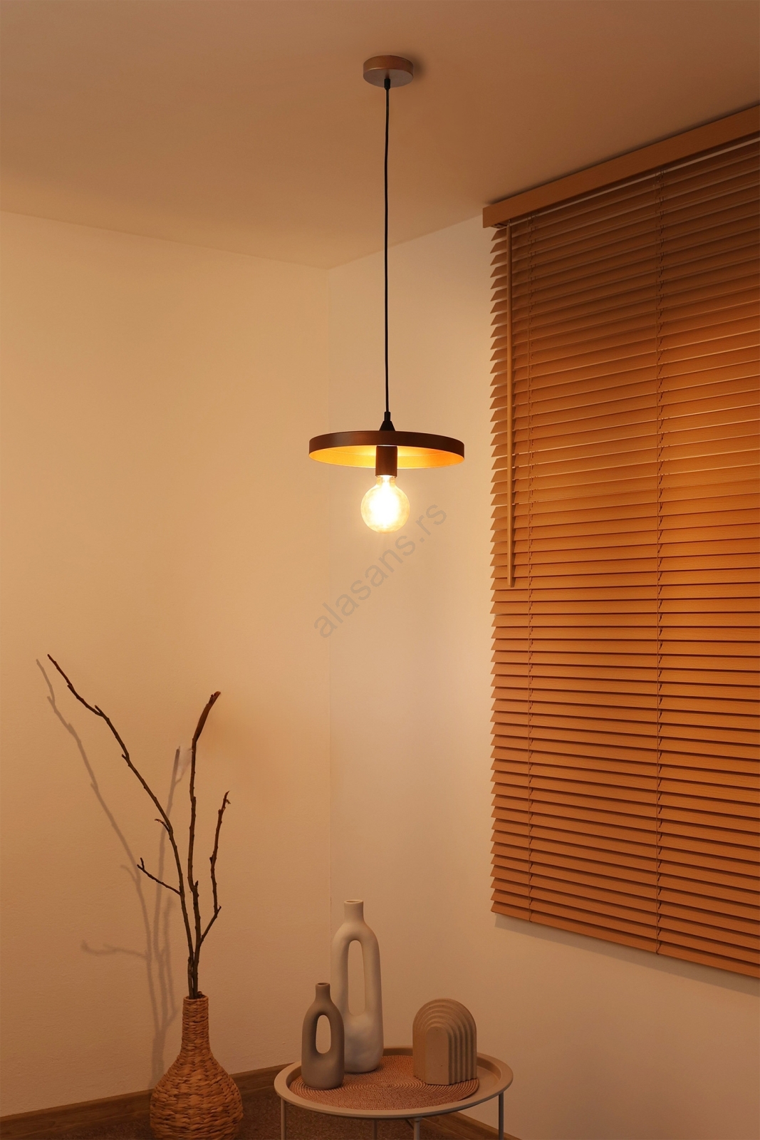 • Duolla - Luster na sajli IRONLINE 1xE27/15W/230V, prečnik 30 cm, bež/bakarna