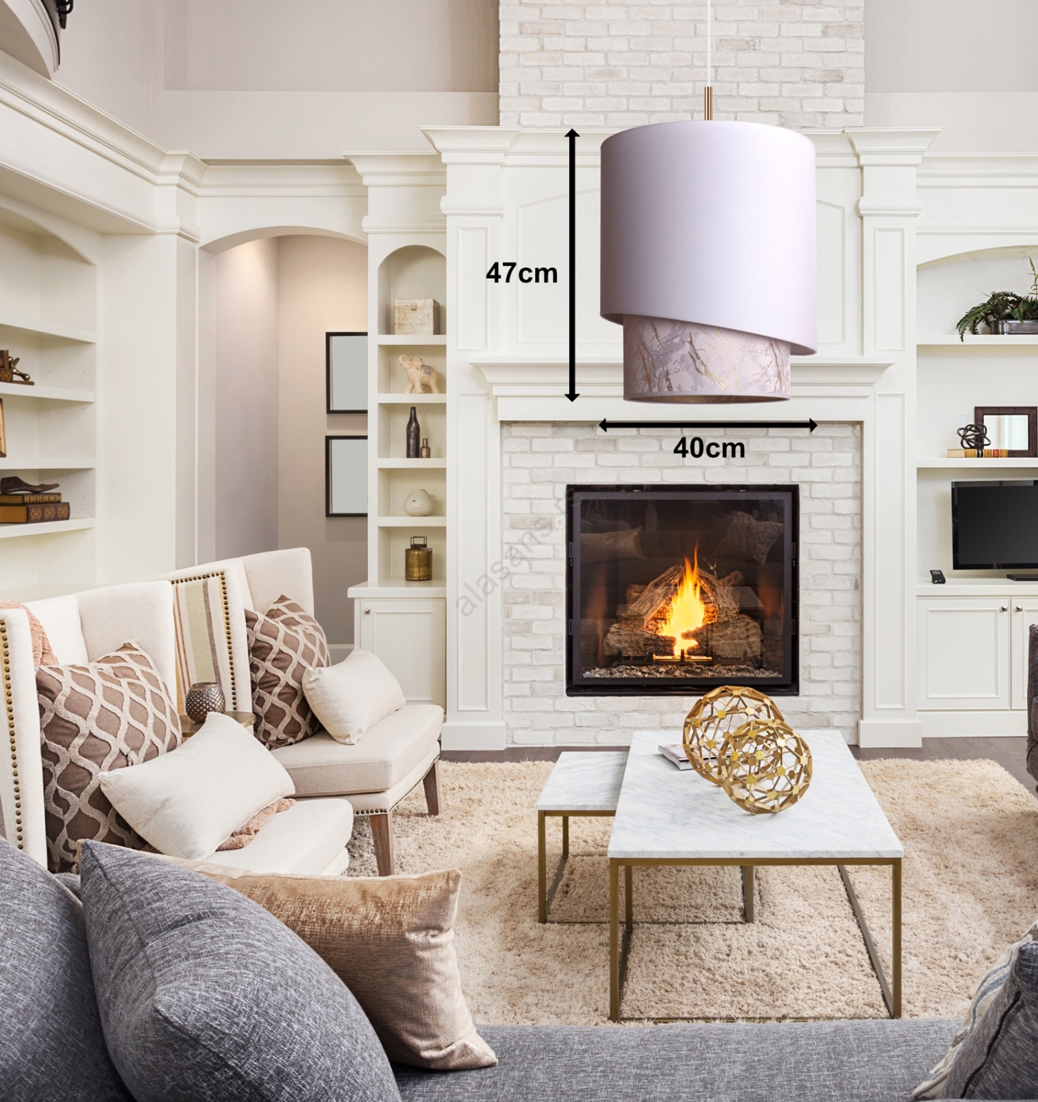 Duolla - Luster na sajli PARIS 1xE27/15W/230V prečnik 40 cm bela/bež | Alasans