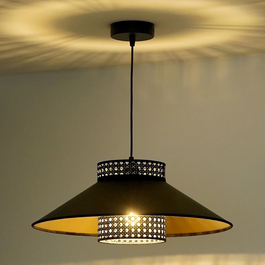 Duolla - Luster na sajli RIO RATTAN 1xE27/15W/230V Ø 45 cm crna/zlatna | Alasans