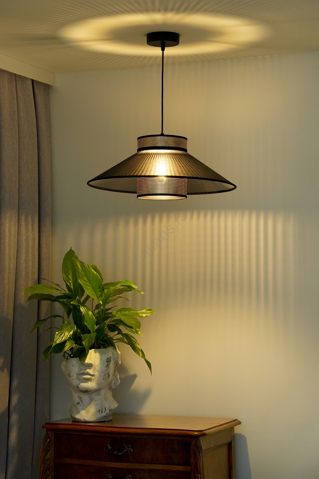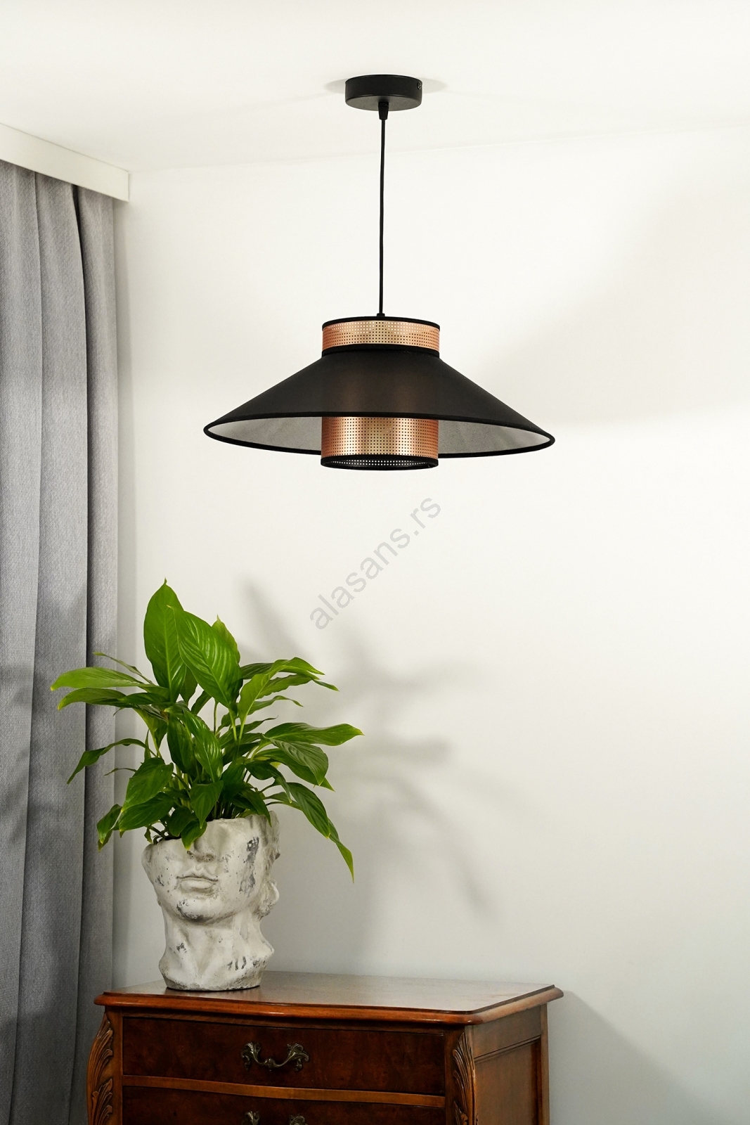 Duolla - Luster na sajli RIO SHINY 1xE27/15W/230V, prečnik 45 cm, crna/bakrena | Alasans