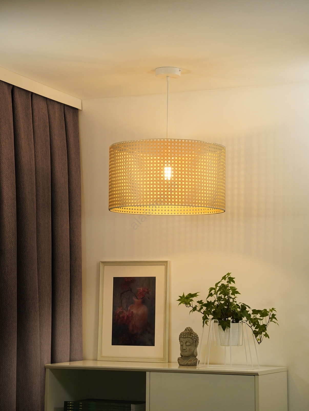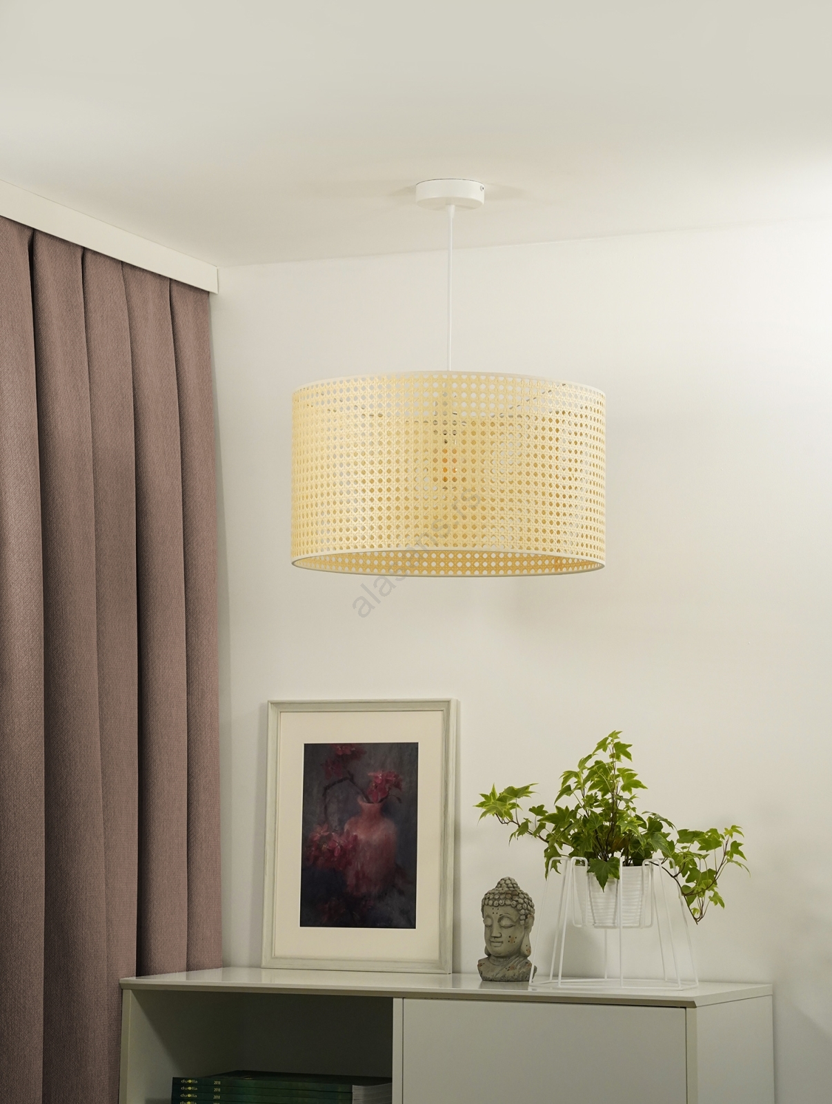 Duolla - Luster na sajli ROLLER RATTAN 1xE27/15W/230V, prečnik 45 cm, bež | Alasans