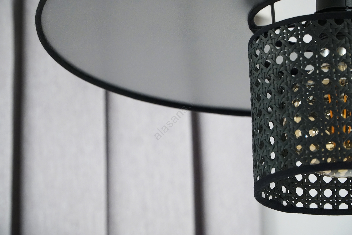 Duolla - Luster na sajli TOKYO RATTAN 1xE27/15W/230V, prečnik 50 cm, crna/srebrna | Alasans