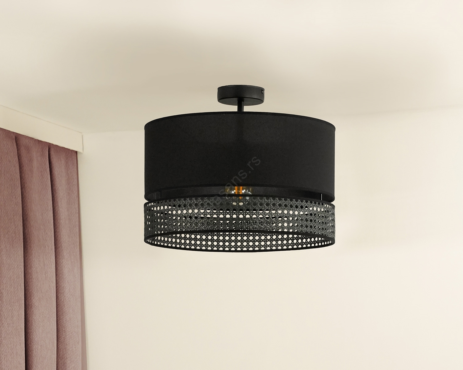 Duolla - Plafonski luster DOUBLE RATTAN 1xE27/15W/230V prečnik 40 cm, crne boje | Alasans