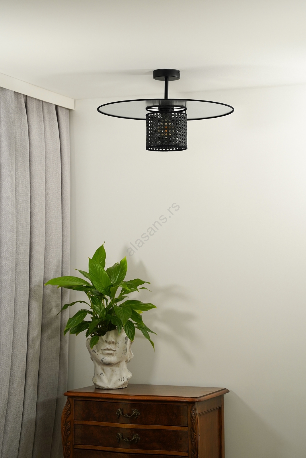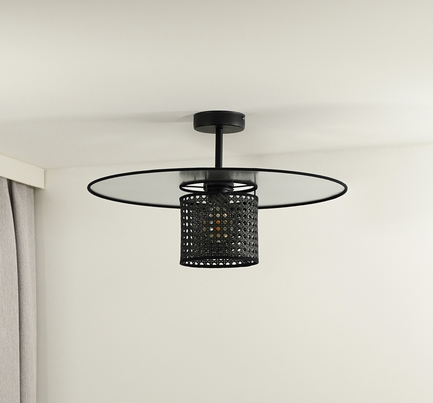 Duolla - Plafonski luster TOKYO RATTAN 1xE27/15W/230V, prečnik 50 cm, crna/srebrna | Alasans