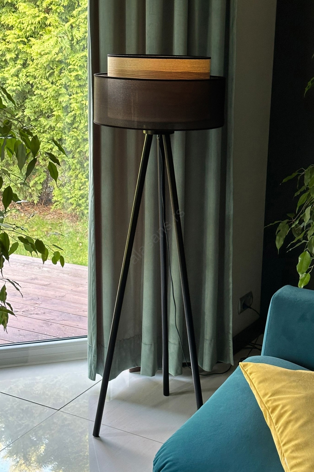 Duolla - Stojeća lampa WOOD BOHO 1xE27/15W/230V prečnik 45 cm crna/bež