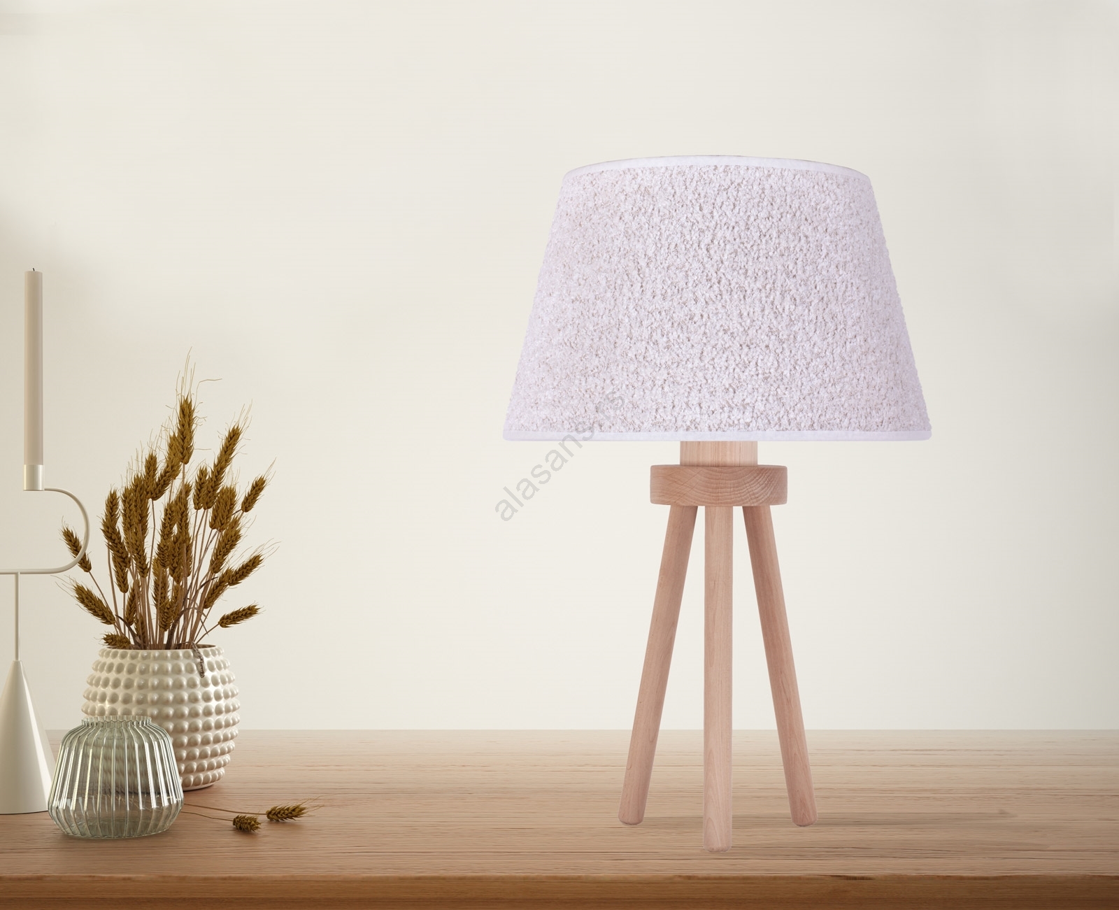 Duolla - Stona lampa BOUCLE 1xE27/15W/230V, prečnik 28 cm, bela/drvo | Alasans
